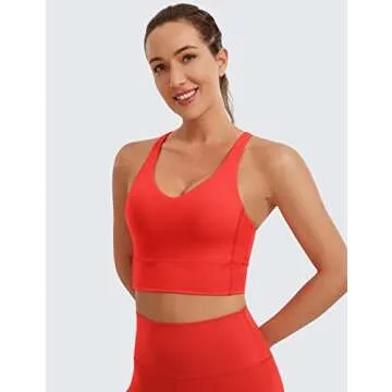 CRZ YOGA Y Back Longline Sports Bra for Women - V Neck Padded Racerback Sports Bra Crop Tank Top Dark Red Medium