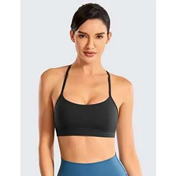 CRZ YOGA Y Back Womens Sports Bra - Padded Racerback Spaghetti Thin Strap Low Impact Workout Sexy Low Cut Yoga Bra Black Small