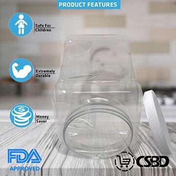 CSBD 1-Gallon Clear Plastic Jars With Ribbed Liner Screw On Lids, BPA Free, PET Plastic, Made In USA, Bulk Storage Containers 2-Pack (1-Gallon (Square))