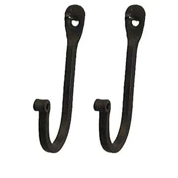 CTW 720002 Early American Single Prong Wrought Iron Hooks, Set of 2 – Rustic Curved Metal Fasteners – Decorative Colonial Wall Décor