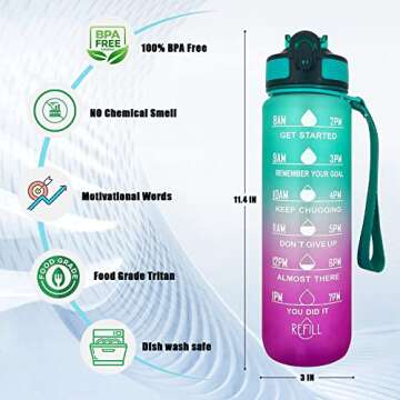 CUA Water Bottle 32 oz - Stay Hydrated & Fit with Time Markers!