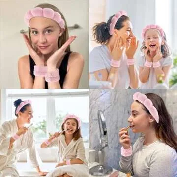 CUBACO 6PCS Spa Headband and Wristband Set - Makeup Headband, Wristbands, Hair Claw Clips, Pink Scrunchies for Women Skincare Non Slip Thick Hair Accessory for Face Washing, Mask, Skin Treatment