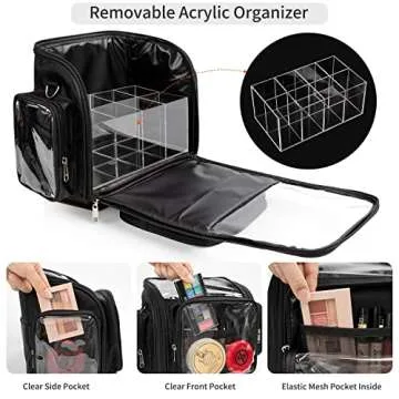 Show moreThe CUBETASTIC Makeup Brush Bag is your ultimate companion for on-the-go beauty organization! Crafted from premium materials including Nylon, Transparent TPU, and Acrylic, this stylish and functional organizer is designed to enhance your beauty routine effortlessly. With dimensions of 11Ă—7Ă—5 inches, this makeup storage solution ensures that all your essential tools and cosmetics are neatly stored and easily accessible. It includes a removable acrylic clear makeup brush holder, a shoulder strap, and a handle strap, giving you multiple carrying options that cater to your lifestyle. Please note, makeup brushes and cosmetics are not included.