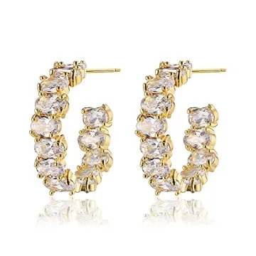Sparkling CZ Hoop Earrings for Women - Exquisite 14k Gold Plated Design