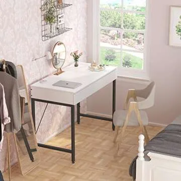 Show moreTransform your workspace with the CubiCubi Computer Desk with 2 Wood Storage Drawers, a stylish and functional 40-inch writing desk designed specifically for small spaces. Crafted with a modern simple style, this desk features a blend of melamine-faced boards and durable steel that together create a stunning display of delicate charm. Its minimalist yet practical design is perfect for any home office or study area, providing an ideal balance of workspace and storage.