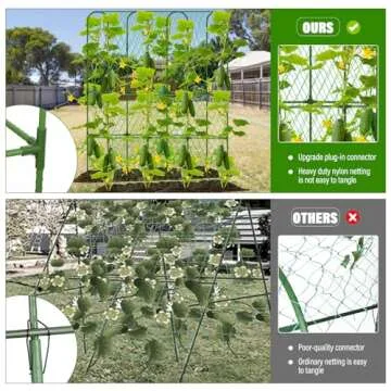 Unlike many standard trellises on the market, our Cucumber Trellis boasts a unique U-shape design that not only adds stability but also enhances the aesthetic appeal of your garden. Other trellises often use flimsy materials that compromise longevity—our rustproof, steel construction paired with a protective coating ensures that your investment lasts through every season. Additionally, the included garden tools and clear instructions set it apart as a comprehensive kit, simplifying the gardening experience.