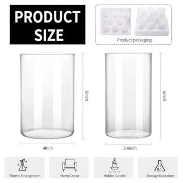 CUCUMl 16pcs Glass Cylinder Vases Set, 6 Inch Clear Flowers Vases for Centerpieces, Hurricane Vases Floating Candle Holders for Home Table Decor Wedding Decorations, 2 Diameters