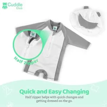 Additionally, the swimsuit features a thoughtful half zipper design, allowing for seamless changing and convenience when dressing your child on the go. This practical addition makes transitions easier, whether you're at the beach or poolside.