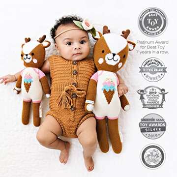 cuddle + kind Willow The Deer Little 13" Hand-Knit Doll – 1 Doll = 10 Meals, Fair Trade, Heirloom Quality, Handcrafted in Peru, 100% Cotton Yarn