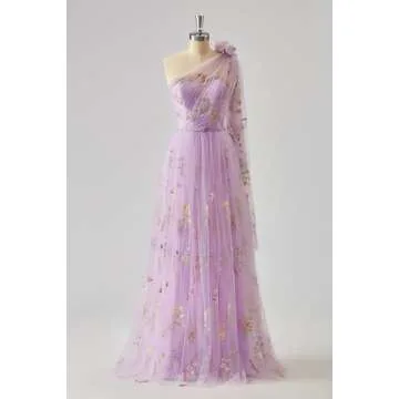 Show moreElegance and grace come together in the Cudiew Women’s One Shoulder Long Flower Embroidery Tulle Prom Dress, a stunning formal evening gown designed for the sophisticated woman. Crafted from high-quality tulle, this floor-length A-Line dress brings a whimsical charm with its delicate flower embroidery. The fitted waist accentuates your figure, while the built-in bra provides support for a seamless silhouette. The lace-up back not only adds a personal touch but also ensures a perfect fit, allowing you to tailor the dress to your exact comfort. Its exquisite design makes it an essential addition to any wardrobe, whether for a grand event or a cozy gathering.