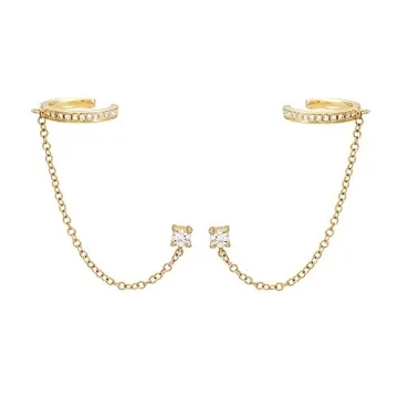 Show more Introducing the meticulously crafted Cuff Hoop Halo CZ Stud Chain Climber Crawler Earrings, a must-have addition to any modern jewelry collection. Designed with elegance in mind, these stunning earrings seamlessly combine style and functionality, making them perfect for both casual outings and glamorous events. Made from premium quality S925 sterling silver, they are hypoallergenic and free from lead and nickel, ensuring a comfortable fit even for sensitive ears.