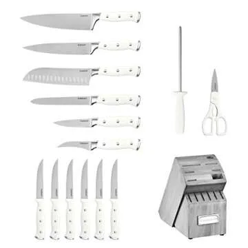 Cuisinart 15-Piece Knife Set with Block, High Carbon Stainless Steel, Forged Triple Rivet, White/Gray C77WTR-15PG
