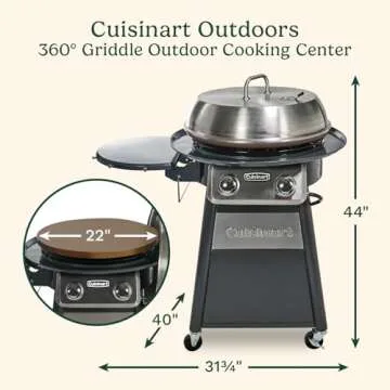 Show moreIntroducing the Cuisinart 360° Griddle Outdoor Cooking Center – a revolutionary outdoor cooking marvel perfect for every grilling enthusiast. This robust 22” round flat top grill not only showcases power with its dual heat control, allowing for a maximum of 30,000 BTUs, but also elevates outdoor cooking with its adjustable cooking zones. Whether you're hosting a family BBQ or cooking for a big outdoor gathering, this grill gives you the flexibility to cook with precision.