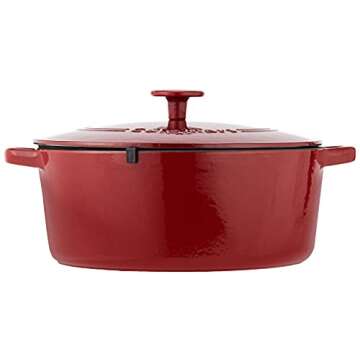This Dutch oven boasts an interior that refuses to absorb odors or flavors, thanks to its porcelain enameled surface, allowing you to experiment with various recipes without worry. Its versatility extends past the stovetop as it is induction stovetop compatible and perfect for oven and broiler use, making it an essential tool for both novice cooks and seasoned chefs alike.