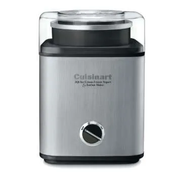 Show moreExperience the joy of creating your own delicious frozen desserts with our innovative double insulated freezer bowl, which holds up to 2 quarts of creamy goodness! Crafted by renowned brand Cuisinart, this ice cream maker combines style and functionality with its brushed stainless steel housing and embossed logo. The fully automatic unit is designed to streamline your ice cream-making process, making it easier than ever to whip up treats that will delight your friends and family.