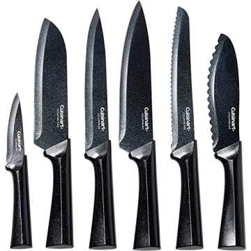 Show moreElevate your culinary experience with the CUISINART 12pc Knife Set, a beautifully crafted collection that perfectly blends functionality and style. This impressive 12-piece assortment includes an 8" chef knife, 8" slicing knife, 8" bread knife, 7" Santoku knife, 6.5" serrated utility knife, and a 3.5" paring knife, making it an essential companion for all your chopping, slicing, and dicing needs. Every knife in this set boasts high-quality stainless steel blades, ensuring long-lasting sharpness and performance, while the chic modern metallic finish adds elegance to any kitchen décor. Whether you’re a seasoned chef or a novice cook, these knives are designed for effortless use, providing the perfect balance of precision and comfort.