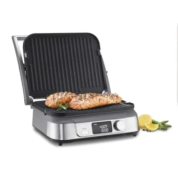 Show moreIntroducing the Cuisinart Griddler, a versatile kitchen appliance designed to elevate your cooking experience. The Griddler FIVE boasts a sleek contemporary design, capable of functioning as a contact grill, panini press, full grill, full griddle, and half grill/half griddle, thereby offering endless culinary possibilities. This appliance allows home chefs to explore their creativity, preparing everything from juicy steaks and grilled sandwiches to pancakes and fried eggs. Its user-friendly features include an LCD Display that showcases functions, temperature settings, and a timer, making it simple to achieve perfect results every time.
