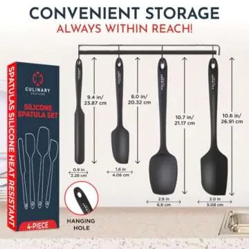 Show moreIntroducing the Culinary Couture 4-Piece Black Silicone Baking Spatula Set, your ultimate kitchen companion designed for every culinary task! This expertly crafted set includes a variety of spatulas: a small and a large spatula, a spreader spatula, and a silicone spoon spatula, making them perfect for mixing, folding, frosting, and scraping. Each utensil not only offers versatility for cooking and baking but also boasts heat resistance up to an impressive 428°F, ensuring you can handle any kitchen task with confidence and ease.