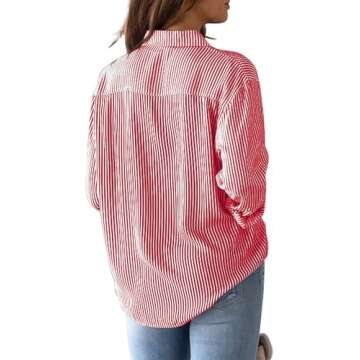 Why You Will Love This Product: You will fall in love with the CUNLIN Red and White Button Down Shirt for its ability to seamlessly blend comfort with high-fashion vibes. It not only enhances your look but also uplifts your mood, giving you the confidence to take on the world, whether at work or play. This blouse embodies much more than a piece of clothing—it's a statement of individuality, a testament to style that works for you, thanks to its superb versatility and chic design. Discover your charm in the remarkable CUNLIN shirt today!