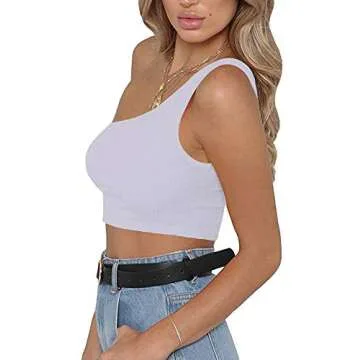 CUNLIN Tube top Womens Crop Tops Going Out top one Shoulder Tube Bustier Cropped Womens Outfitters Summer Ribbed White 08 M