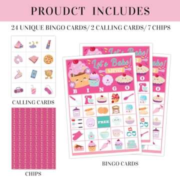 Cupcake Party Bingo Game, 24 Player Sweet Bingo Cards Set for Family Friend Activity, Baking Party Favor Decoration Holiday Supplies -a12