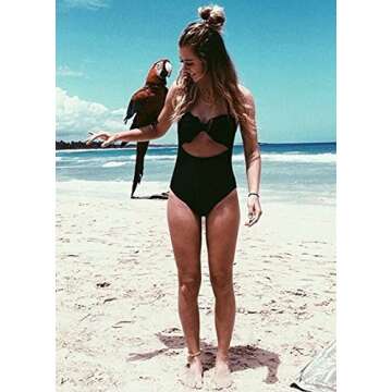 Cupshe Fashion Women's Sexy Irregular Hem One Piece Padded Bikini Set (Medium), Black