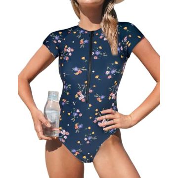 CUPSHE One Piece Swimsuit for Women High Neck Zipper Short Sleeve Floral Bathing Suits