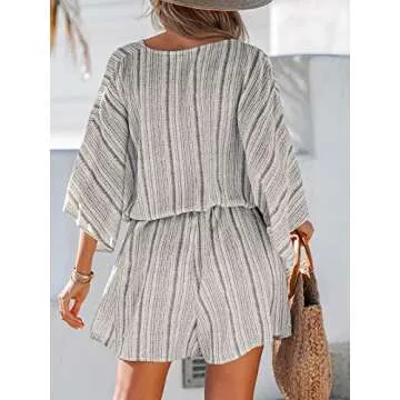With its unique striped design and belted feature, this romper accentuates your silhouette beautifully, adding a classic charm that never goes out of style. Not only does it allow for versatile styling, but it can also be paired effortlessly with layers, such as a jacket for a chic look during spring and summer seasons. Whether you're dressing it up for a cocktail party or keeping it casual for a beach vacation, this versatile romper promises to elevate your ensemble.