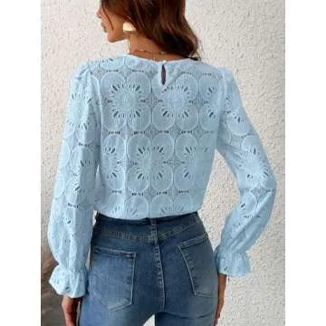Show more This delightful floral long sleeve top melds comfort with modern aesthetics, making it a must-have in every woman's wardrobe. Made by a reputed brand, this chic eyelet design shirt is crafted from a breathable mix of 60% Cotton and 40% Nylon, ensuring a comfy fit without compromising on style. The delicate embroidered lace detailing and loose fit create a romantic silhouette, perfect for a variety of occasions. Whether you're planning a vacation, heading to the office, or enjoying a casual day out, this versatile top offers a stylish solution to everyday dressing.