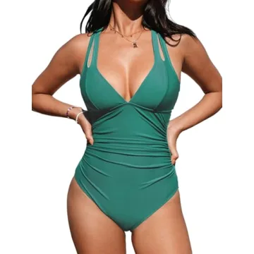 Show more Introducing the exquisite CUPSHE Women's One Piece Swimsuit, a perfect blend of style and functionality designed to make every woman feel confident and beautiful. This stunning swimsuit features a deep V neckline that elegantly frames the face, while side ruching provides a flattering silhouette to enhance your natural curves. The adjustable shoulder straps lead to a chic crisscross self-tie back, allowing you to find your ideal fit, ensuring you’re both comfortable and stylish whether you’re lounging by the pool or splashing around in the surf.