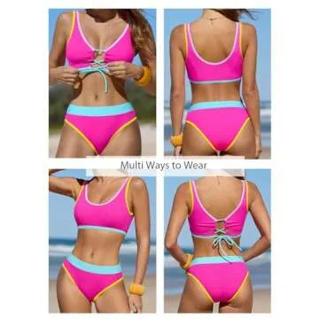 CUPSHE Women's Bikini Sets Two Piece Swimsuit Scoop Neck Crisscross Self Tie Color Block Mid Rise Reversible Top,M