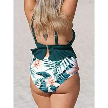 CUPSHE Women's High Waisted Green and Floral Ruffled Plus Size Bikini, Size 0X
