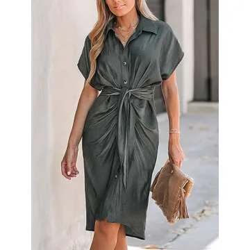 Show more CUPSHE's Women's Midi Dress is the epitome of chic versatility, perfectly blending comfort with style. Crafted from a premium fabric of 50% polyester and 50% cotton, this dress feels as good as it looks, ensuring breathability for all-day wear. The enchanting Smoke Gray Knotted Sash Shirt Dress features a unique knotted sash detail that adds a touch of elegance, allowing you to transition seamlessly from casual brunches to sophisticated evening events. With its tailored cut and flattering design, it’s the perfect solution for every occasion.