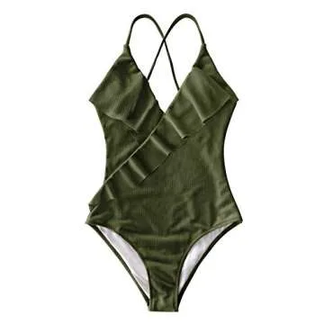 CUPSHE Women's One Piece Swimsuit Ruffle Wrap Textured Beach Swimwear Bathing Suits Green S