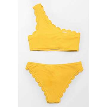 CUPSHE Women's Solid Wavy Edge One-Shoulder Bikini Set Rain of Petals Yellow