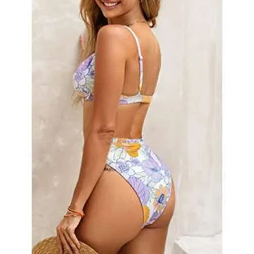 CUPSHE Women Lavender Floral Two Piece High Waisted Bikini Set with Underwire