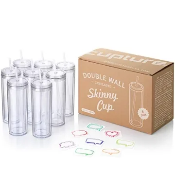 Show moreIntroducing the **Cupture Skinny Acrylic Tumbler Cups** with Straws, a delightful solution for your hydration needs! These stylish and functional tumblers come in a pack of eight, each with a generous 18-ounce capacity, perfect for enjoying your favorite beverages on the go. Designed with a sleek, crystal-clear body and a slim profile, they effortlessly fit into most car cup holders, ensuring you stay refreshed whether you’re headed to work, on a road trip, or simply relaxing at home. Made from **BPA-free premium-grade acrylic**, these tumblers are both safe for your health and environmentally friendly, helping you reduce single-use plastics in style.