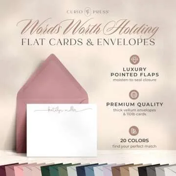 Introducing the **Curio Press Personalized Stationery for Women**, the ultimate expression of elegance and individuality for all your correspondence needs. Each set includes **10 flat A2 blank cards** (4.25 x 5.5 inches) paired with beautifully crafted envelopes, perfect for those who appreciate a personal touch in their notes. Embrace your creativity by customizing every aspect of your stationery – from the size and quantity to the colors and text. Our products are designed with the modern woman in mind,...