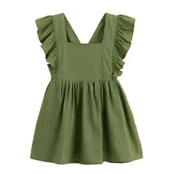 The perfect blend of comfort and style, the baby girl ruffle sleeveless dress stands out with its adorable design and quality craftsmanship. Made from a luxurious mix of 45% cotton and 45% linen, this dress is not only soft against a toddler's skin but also breathable, making it ideal for any occasion. The crossed strap design at the back ensures that the dress stays securely in place while allowing for ease of movement during play. No more worrying about shoulder straps falling off while your little...