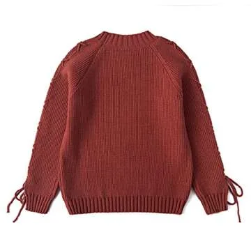 Curipeer Girls Sweaters Crewneck Long Sleeve Lace Up Pullover Knit Tops 8-9 Years