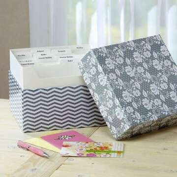 Current Grey Roses Greeting Card Organizer Box, Stores 140+ cards (not included). 7" x 9" x 9-1/2"