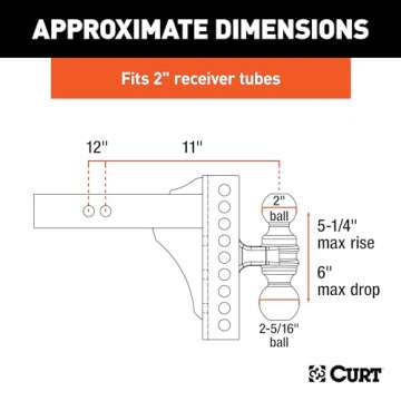 CURT 45900 Adjustable Trailer Hitch Ball Mount, 2-Inch Receiver, 6-Inch Drop, 2 and 2-5/16-Inch Balls, 14,000 lbs , Black