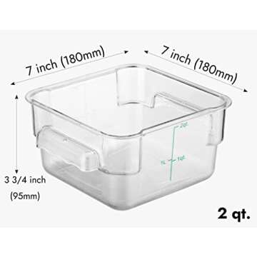 CURTA 4 Pack Food Storage Container with Green Lid - NSF Listed 2.0 Qt Square Clear Polycarbonate