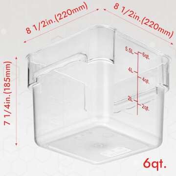 Show moreIntroducing the CURTA 4 Pack Food Storage Container with Red Lid, a comprehensive solution for food storage that caters especially well to those who prioritize organization and freshness in their kitchen. These NSF commercial-grade containers come with a spacious 6-quart capacity, perfectly tailored for meal prep, ensuring you have ample space to store everything from hearty stews to freshly chopped salads. Crafted from durable polycarbonate material, you can count on these containers to withstand the test of time, resisting cracks and breakage even under heavy usage, making them an excellent investment for any kitchen.