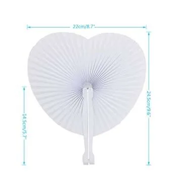 Cusfull 48 Pack White Folding Paper Fans Handheld Paper Fans for Wedding/Party/Party Favours (Heart Shape)