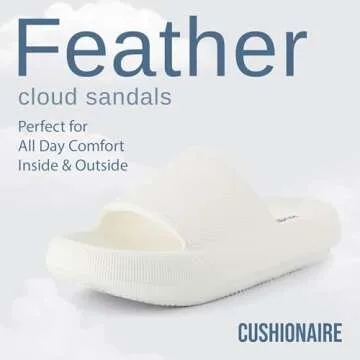 Show more Step into a world of unparalleled comfort with the Cushionaire Cloud Slides, a footwear revolution designed specifically for those who cherish relaxation without sacrificing style. Made from premium EVA foam, these slides offer a plush, cloud-like cushioning that feels heavenly underfoot. Whether you're lounging at home or taking a quick trip around town, the exceptional support keeps your feet happy all day long. Their non-slip design is perfect for wet surfaces, making them an ideal choice for the shower or poolside outings.