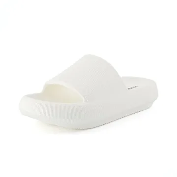 Show more The CUSHIONAIRE Feather Slides redefine comfort with an unparalleled cloud-like cushioning experience. Designed specifically for women seeking elegance in their casual footwear, these slides feature premium EVA foam construction that cradles your feet in soft support. Whether you're lounging at home or stepping out for errands, you'll notice the difference immediately as the plush footbed hugs your feet.