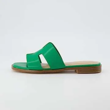 Show more Step into the spotlight with the **CUSHIONAIRE Voyage Cutout Strap Slide** for Women, a perfect blend of modern style and unparalleled comfort. Designed with meticulous attention to detail, this fashionable footwear features an elevated strap styling that draws inspiration from today’s fashion trends, making it an ideal choice for dressy casual looks. The Kelly Green color not only adds a vibrant pop to your outfits but also embraces the spirit of summer 2025. With a focus on versatility and ease, these slip-on flats fit seamlessly into your daily routine, whether you're heading out for errands or enjoying a vacation by the beach.