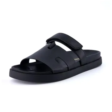 CUSHIONAIRE Women's Lotto Footbed Sandal - Vegan Leather, Comfort Design, Black 7