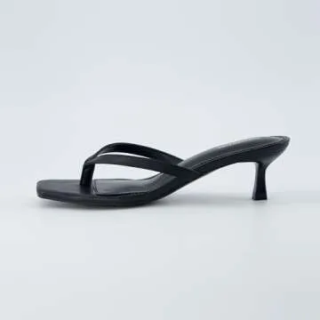 CUSHIONAIRE Women's Miami Kitten heel thong sandals +Memory Foam, Wide Widths Available, Smooth Black 9